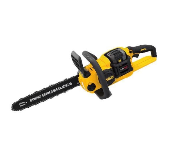 La tronçonneuse DEWALT 60 V MAX* se compose d’un guide et d’une chaîne OregonMD à faible rebond de 406.4 mm (16 po) utilisable tant pour le bâtiment que pour des découpes à l’extérieur. Sa commande permettant de serrer le guide et de tendre la chaîne assure une force de serrage de guide adéquate, et l’appareil possède un système d’autograissage assurant la lubrification en continu. Il possède une batterie FLEXVOLT de 60 V MAX* qui fait fonctionner des accessoires de 60 V MAX* ou peut être rétroactivement compatible pour fonctionner avec des accessoires de 20 V MAX*.